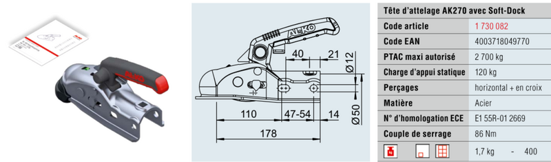 pour remorque freinée jusqu'à 2700 kg - charge d'appui 120 kg