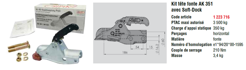 Tête d'attelage AK 351 avec Soft Dock - tête en fonte